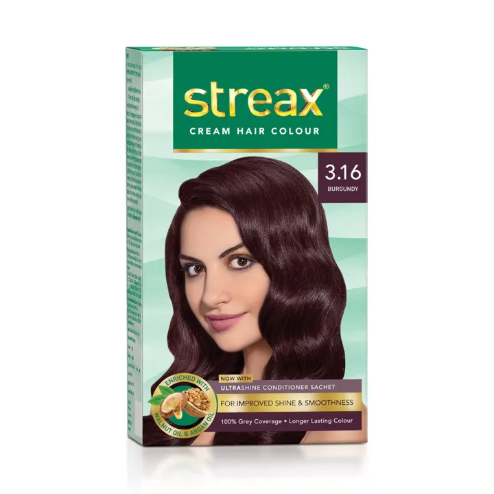 Streax Cream Hair Color Enriched with Walnut Oil & Argan Oil Burgundy 3.16 - (50gm+50ml)