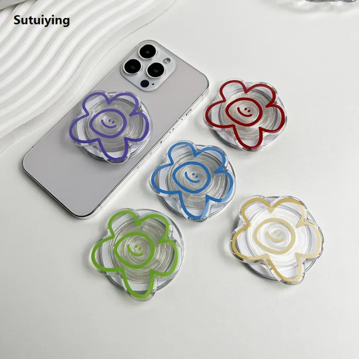 Sutuiying Simple art style flowers Phone Holder Socket Grip For Magsafe Fashion IPhone Mac Samsung Safe Ring Finger Expanding Stand