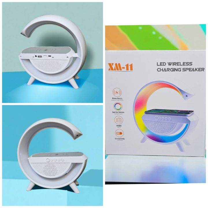 Table Lamp 10W Wireless Charger Stand Pad with Bluetooth Speaker TF RGB Multifunctional Bedside Desktop Night Light
