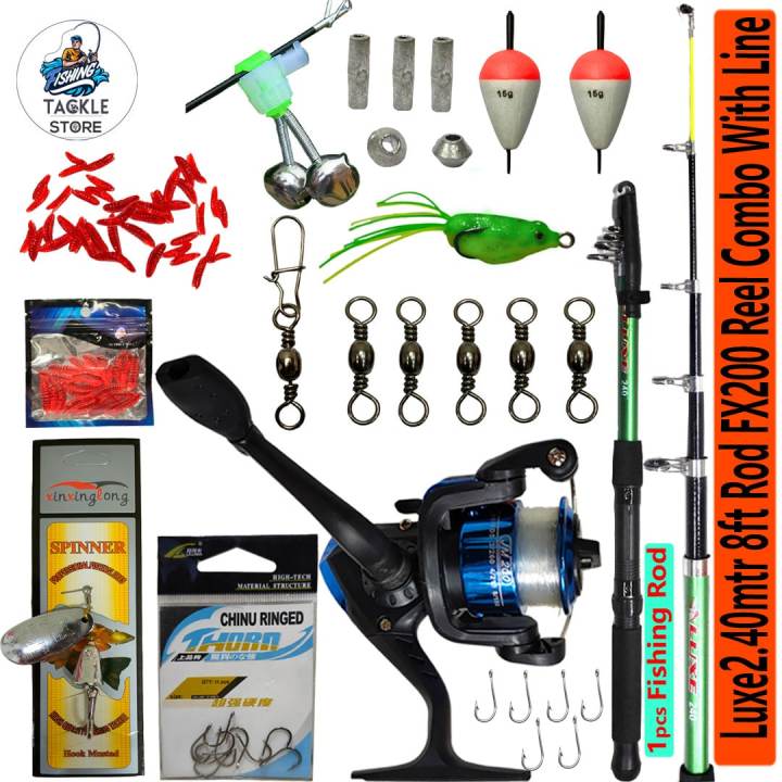 Telescopic Fishing Rod and Reel Combo - Luxe 2.40mtr 8ft Rod And FX200 Reel With Line | Multicolor Telescopic Fishing Rod