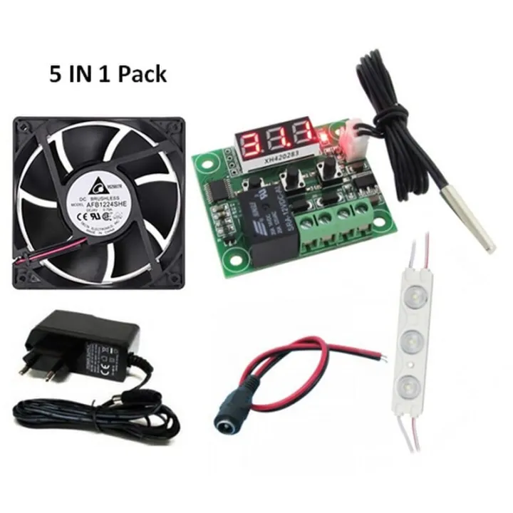 Thermostat Temperature Control For Incubator With 12V 1A DC Adapter, 12V led, Fan, Dc Female Jack Combo Set