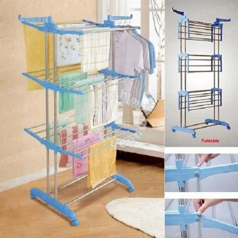 Three Layer Clothes Rack Hanger With Wheels For Drying Clothes