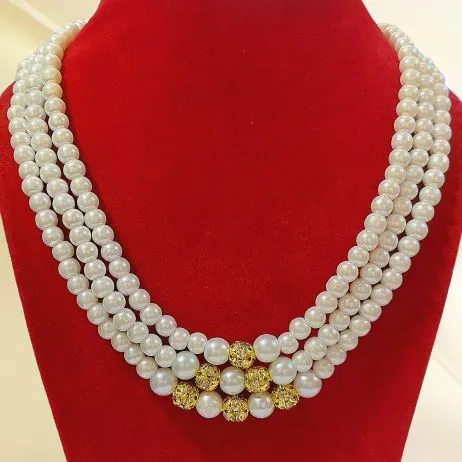 Three Layer Pearl Necklace for Women 50cm Elegant Artificial Moti Mala