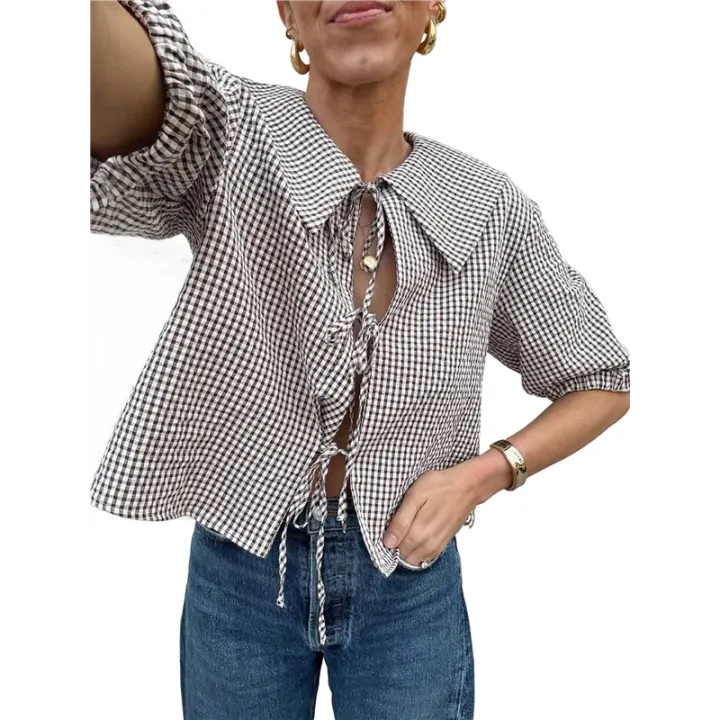 Tie%20Front%20Tops%20Womens%20Y2k%20Leopard%20Print%20Peplum%20Babydoll%20/4%20Length%20Puff%20Sleeve%20Cute%20Going%20Out%20Tops%20-%20Image%209