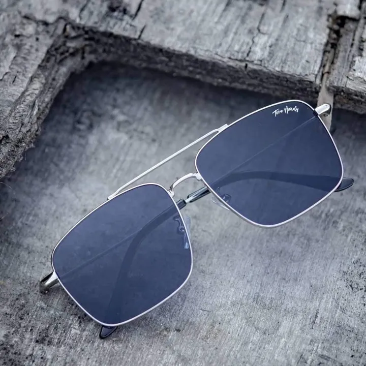 Tom Hardy Flat Square Silver Black Classic Vintage Sunglasses For Unisex