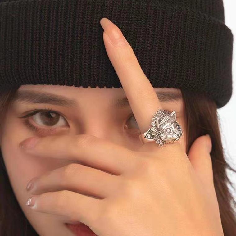 【Top-notch quality】Elvis Presley Ring Retro Indian Cat Head Finger Ring Personalized Men's Women's Fashionable Hand Jewelry