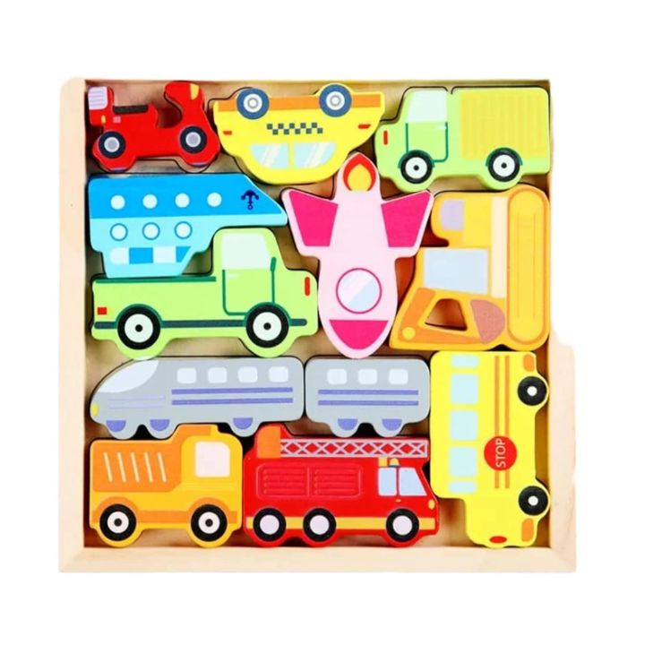 Transportation -Themed 3D Wooden Stacking Puzzle for Baby & Toddlers – Educational Jigsaw for Early Learning, Fine Motor Skills & Creative Play