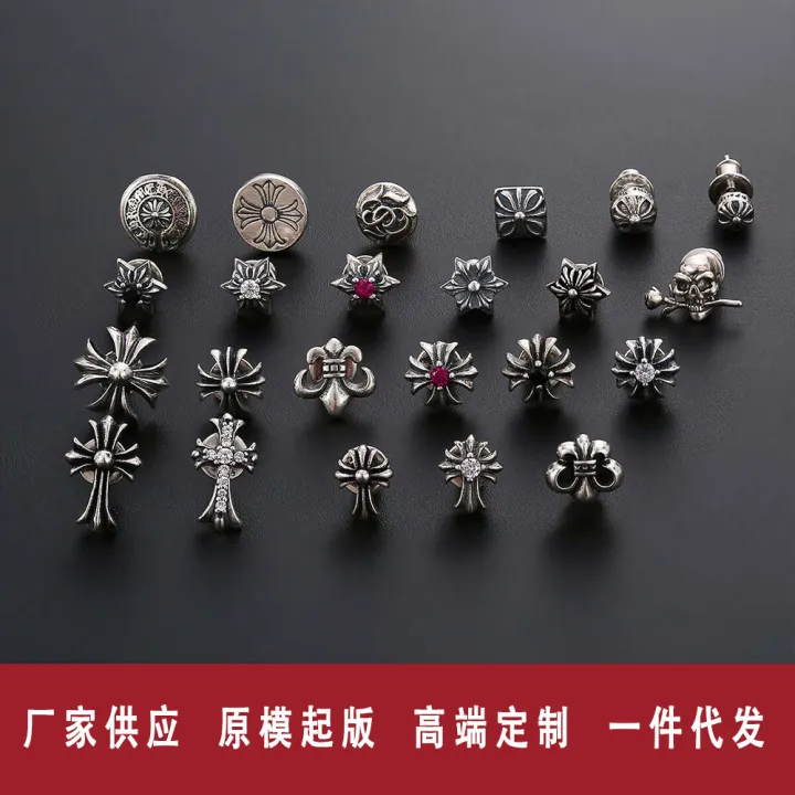 Trendy brand CH Croling old-fashioned vintage Thai silver with diamond cross flower Scout flower stud earrings collection of men and women 925 silver needles