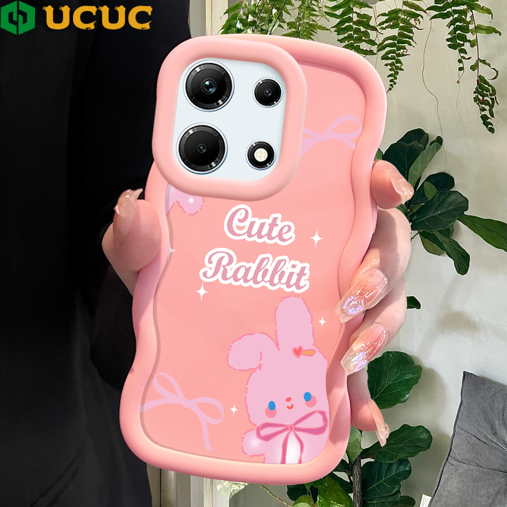 UCUC for Infinix Note 30 40 Pro+ Hot 40i Smart 7 8 Plus Smart 5 6 Spark 20C GO 2024 2023 Zero 30 4G Back Cover Pink Plush Rabbit Creative Candy Color Wave Silicon Phone Protective Case