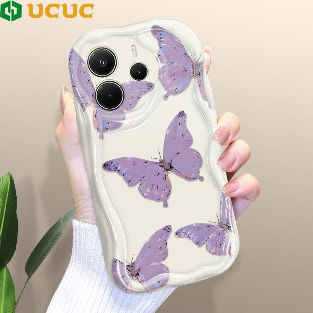 UCUC for Redmi Note 14 Note 14 Pro Note 14 Pro Plus 5G Xiaomi Poco X7 5G Back Cover Colorful Butterfly Cream Texture Wavy Edge Soft Silicone Phone Case