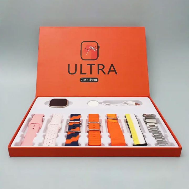 Ultra Smart Watch 7 in 1 BT Calling, Big Display 49MM Sports Mode Fitness 7 Belt for Men & Women Smartwatch (Multicolor Strap, Free Size)