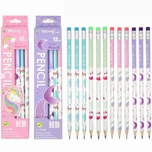 Unicorn 2B HB Pencils 12 Pcs Set | Cute Unicorn Printed Super Quality Easy To Hold 2B HB Pencil - 12 Pcs Set