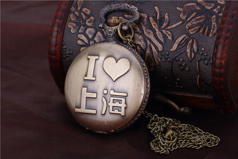 【Unique features】Shanghai IOVE YOU Pocket Watch Large Retro Love Pocket Watch Fashion Creative Pocket Watch With Necklace
