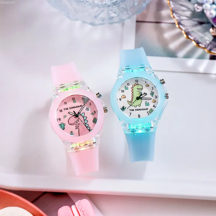 Uonevic Flashlight Luminous Grils [Renren Daily Necessities Store] Fashion Cartoon New style Dinosaur Kids Watch Watches Boys Student Baby Clocks Baby Clocks