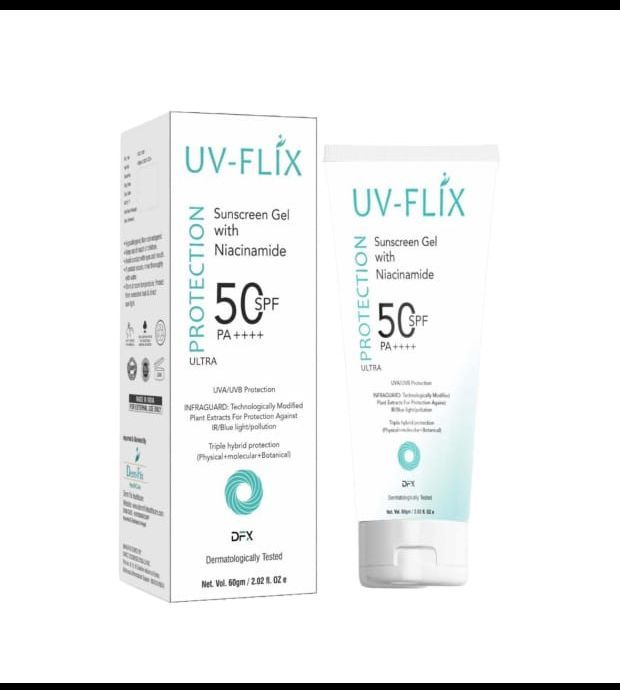 UV-Flix Sunscreen Gel With Niacinamide SPF 50++++, 60Gm.