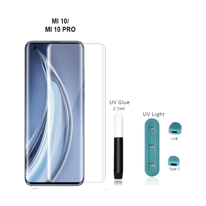 UV Glass for Xiaomi Mi 10 / 10 Pro Screen Protector Full Glue Cover Tempered Curved Clear