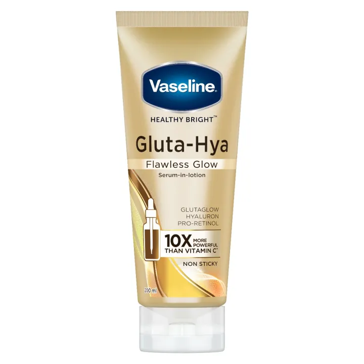 Vaseline Gluta-Hya Flawless Glow Lotion for Face & Body | Gives Brighter Skin | Glutathione & Pro-Retinol Infused Moisturizer, 200ml