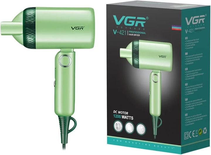 VGR%20V-421%20Professional%20Foldable%20Hair%20Dryer%201200W%20DC%20Motor%202%20Speed%20Settings%20comes%20with%20Styling%20Concentrator,%20Overheating%20Protection%20&%20a%20Hanging%20Loop%20-%20Image%201