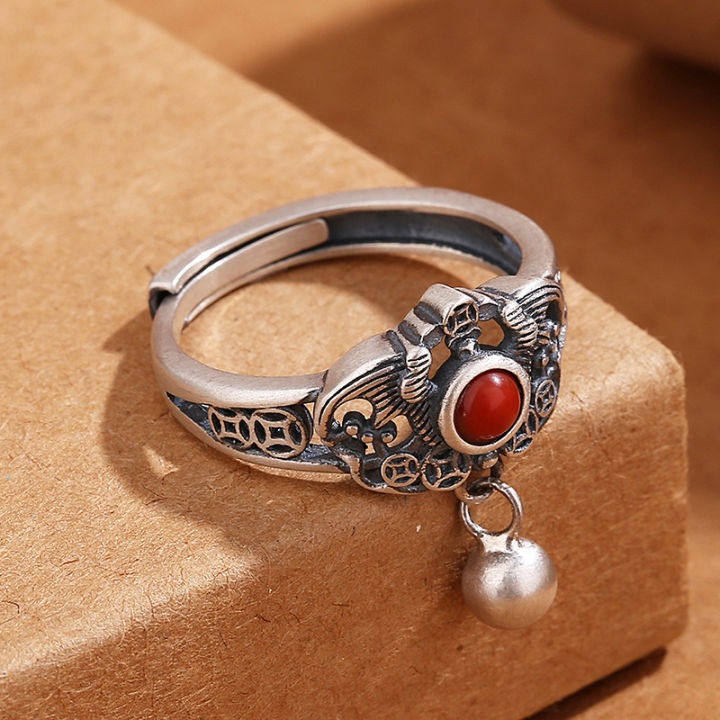 Vintage%20plated%20S990%20Thai%20silver%20copper%20coin%20southern%20red%20agate%20ring%20women's%20openwork%20pattern%20water%20drop%20national%20tide%20live%20mouth%20index%20finger%20hand%20ornament%20-%20Image%2010