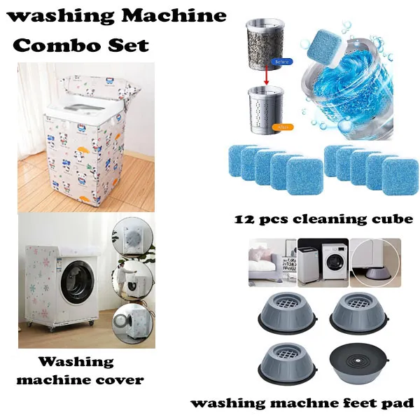 Washing Machine Combo Set ( Washing Machine Cover, 12 Pcs Cleaning Cube, 4 Pcs Feet Pad)