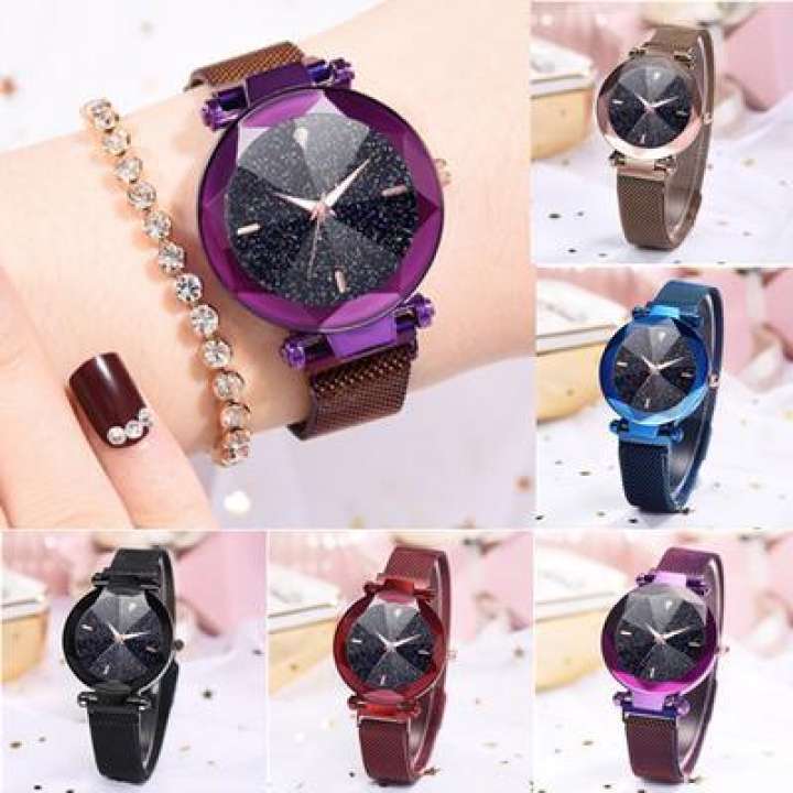 Watch For Women Fashion Starry Sky Convex Glass Quartz Mesh With Magnetic Buckle Ladies Watch