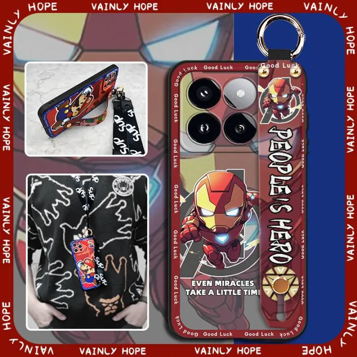Waterproof Lanyard Phone Case For Xiaomi 14T Phone Holder Kickstand Anti-dust Silicone Cartoon Dirt-resistant Anti-knock