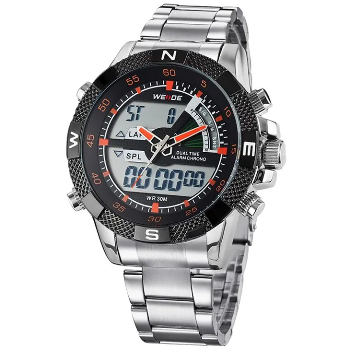 WEIDE Stainless Steel Quartz 3 Atm Water Resistant Analog Dual Time Zone Wristwatches