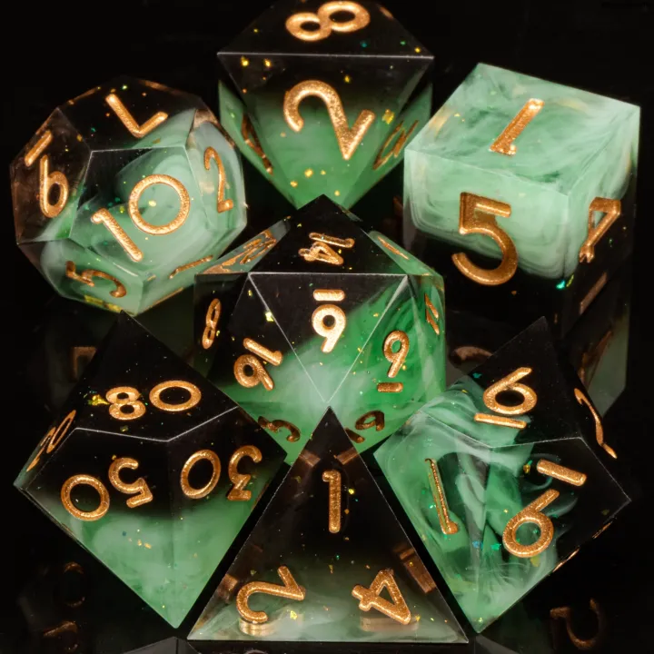 Weihonghunfei【2025 Version】 Set Dice Resin, Resin DnDD, Dragon and Applicable, D Make Handmade Resin Polyhedron D Dice Set in Dungeon D and Dice with Sharp Edge Dice Green Affordable