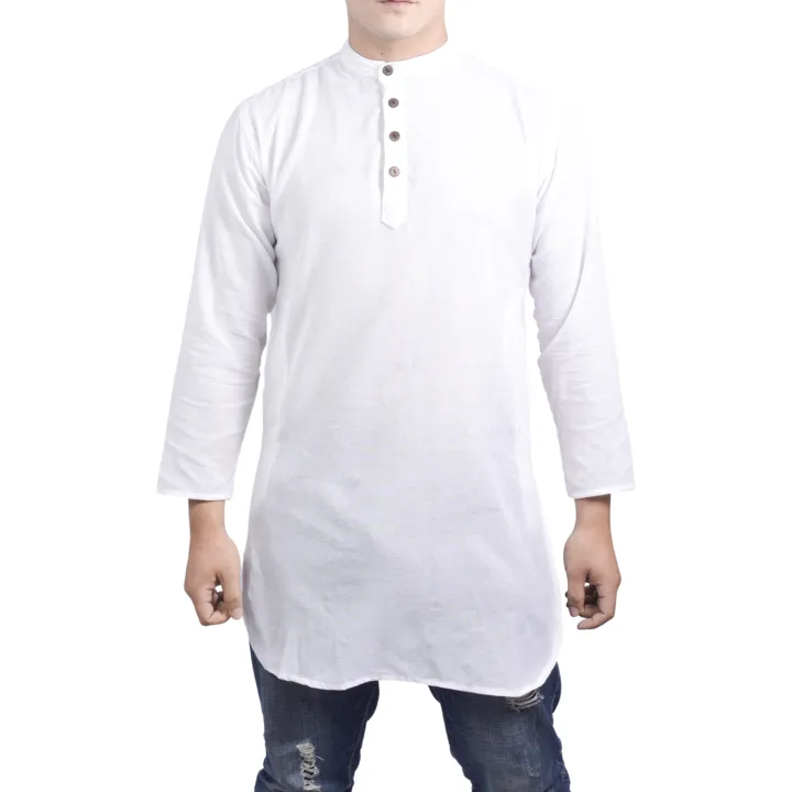 White Cotton Long Kurta For Men