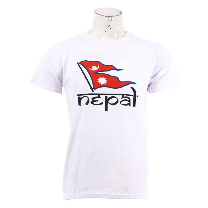 White%20Cotton%20Round%20Neck%20Half%20Sleeve%20Nepal%20Flag%20Printed%20T-Shirt%20For%20Men%20-%20Image%201