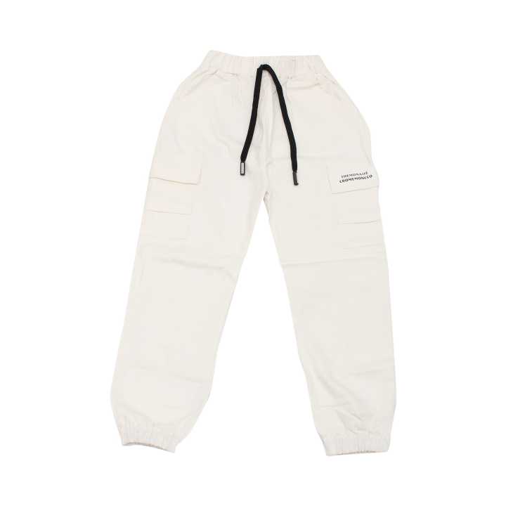 White Cotton Side Pocket Design Joggers For Boy