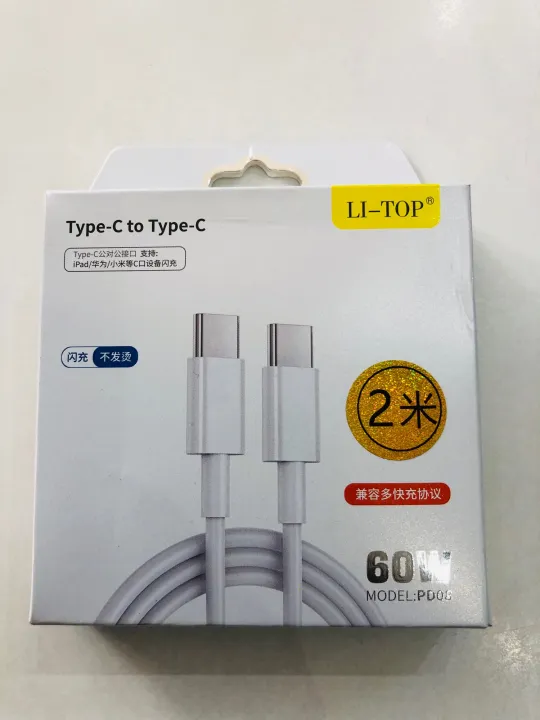 White%20USB%20Type%20C%20to%20USB-C%20PD%20Quick%20fast%20Charging%20Data%20Fast%20cable%202Meter%20Long%20-%20Image%202