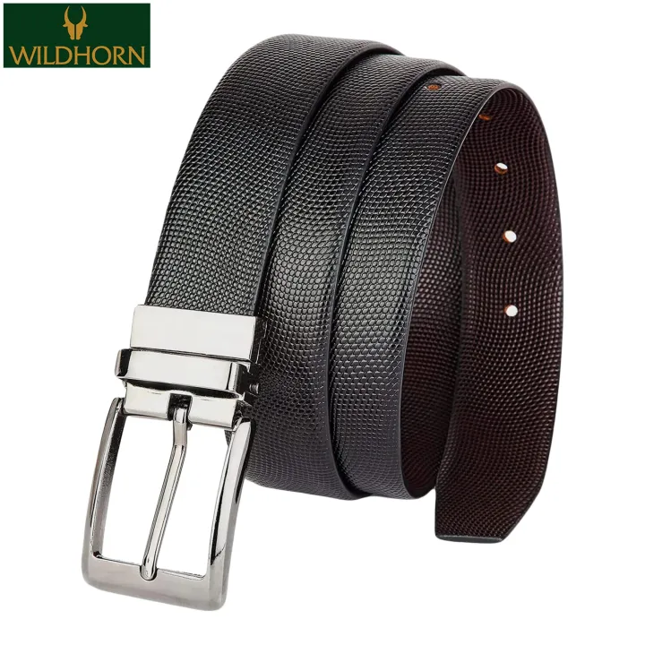 WILDHORN Nepal Reversible Leather Formal Belt for Men Color-Black & Brown Waist upto 42 inches I (WHBLT 557 reversible)