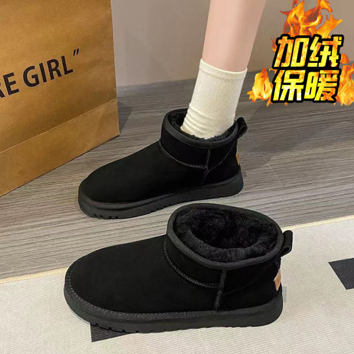 Winter new fleece-lined thick snow boots women's fashion all-match plush shoes outer wear thick bottom warm winter cotton shoes women