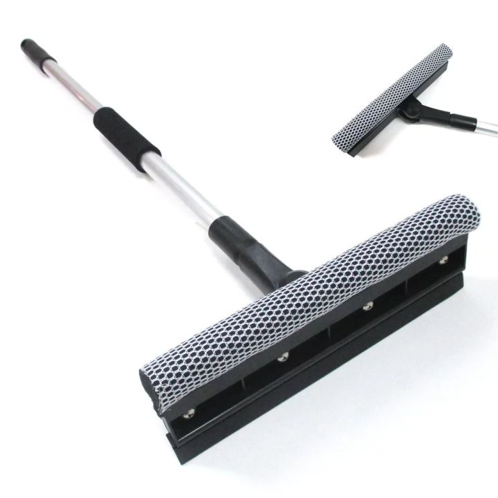 Wiper & Scrubber Dual Side Blade Rubber & Soft Sponge Telescopic Long and Short Pole 2 in 1 Car Wiper Home Cleaning Brush Extendable Solid Handheld