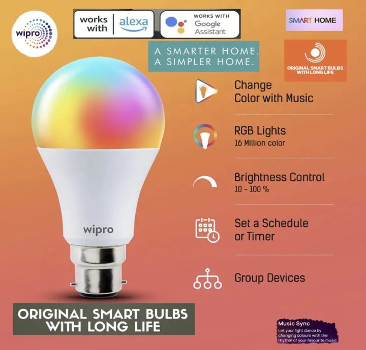 Wipro%20Ns9400%209-Watt%20B22%20Wifi%20Smart%20Led%20Bulb%20With%20Music%20Sync%20Amazon%20Alexa%20And%20Google%20Assistant%20Supported%20-%20Image%201