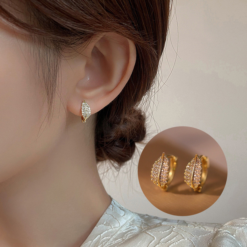 Women Retro Gold Delicate Crystal Leaf Earrings Simple Circle Hoop Earrings Fashion Jewelry Gifts for gf