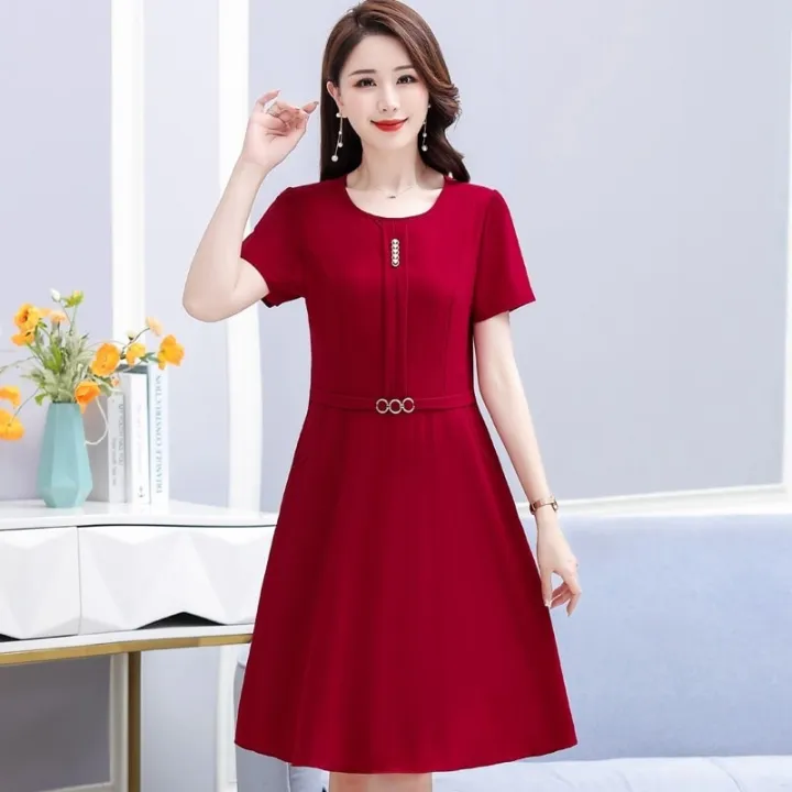 Women Short Sleeve Midi A-Line Adjustable Waist Casual Dress