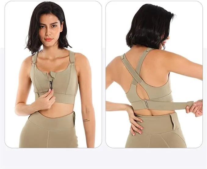 Women Sports Bras Tights Crop Top Yoga Vest Front Zipper Plus Size Adjustable Strap Shockproof Gym Fitness Athletic Brassiere