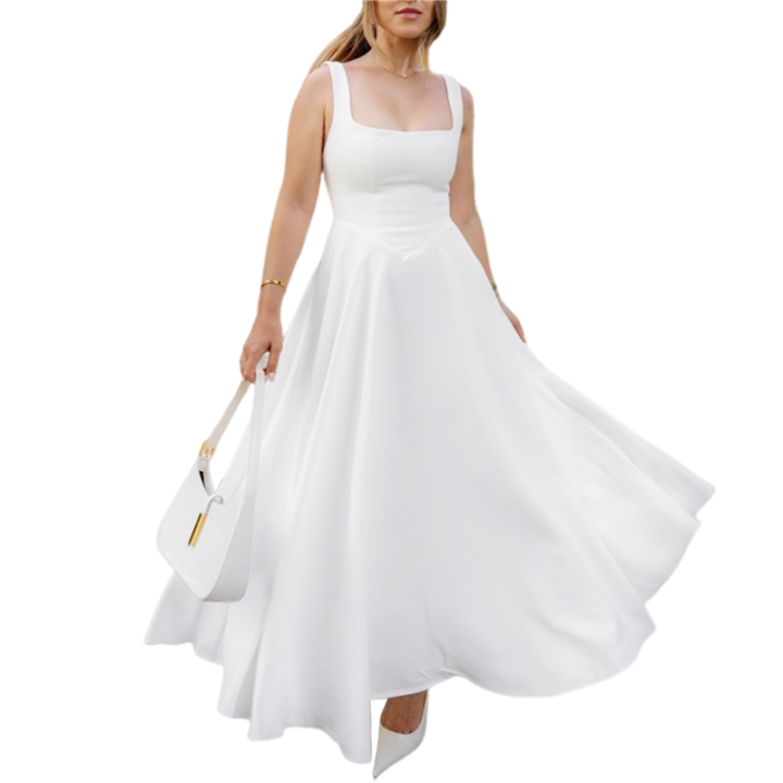Women'S 2025 Spring and Summer Square Neck Wide Strap Flowing Midi Dress Wedding Guest Ball Cocktail Dress