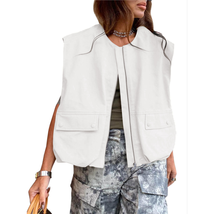 Womens%20Casual%20Zip%20Up%20Vest%20White%20L%20-%20Image%201