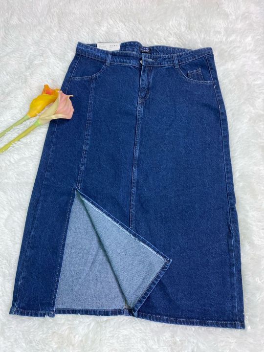 "Women's High-Waisted Midi Denim Skirt with Front Slit" SK