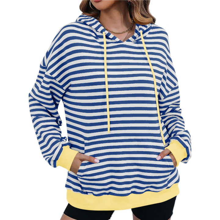 Women's%20Striped%20Pullover%20Hoodies%20Royal%20Blue%20L%20-%20Image%201