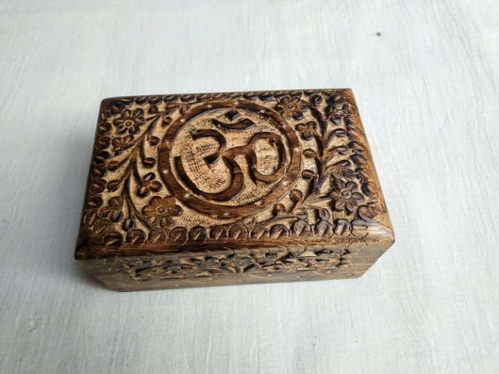 Wooden Box Om Carving Blackish White In Mango Wood 6*4 Inch
