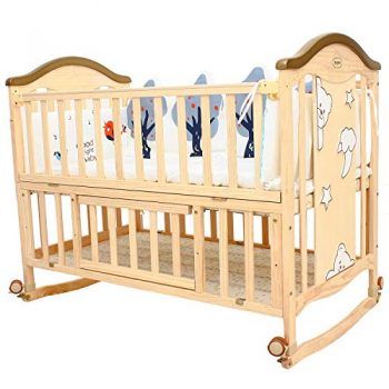 Wooden Cradle for Baby/Newborn Baby Cotton Baby Cradle/ Baby Crib Wooden Cot with Bedding Set and Mosquito Net /Wooden Cradle for Babies (Brown)