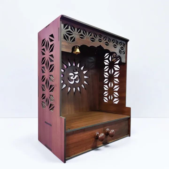 Wooden Pooja Stand Designer Mandir For Home Office Brown Temple