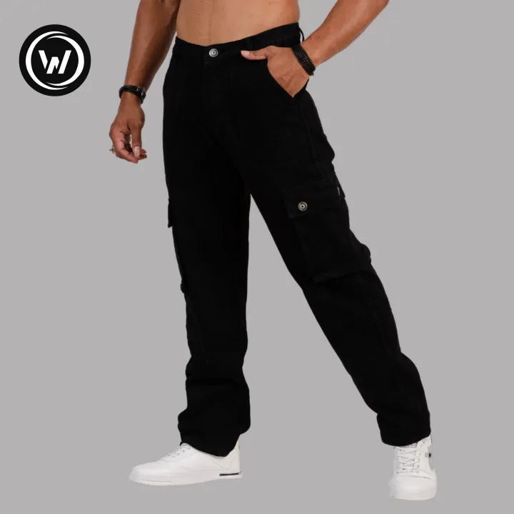 Wraon Black Solid Premium Casual Denim Cargo Jeans Pant For Men - Fashion | Pants For Men | Men's Wear | Cargo Pants |