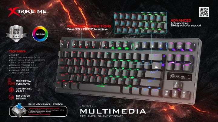 Xtrike Me GK-979 Mechanical Gaming Keyboard Rainbow Backlit 87 Keys