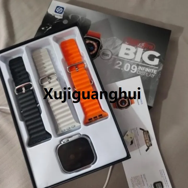 Xujiguanghui T900 series 8 T900 pro max Smartwatch 2.09| HD Full Touch Display Bluetooth Call smartwatch Sports fitness tracking Health monitor Men Women connect Android iOS waterproof Ultra watch /T900 ultra Smart Watch With 3 Straps