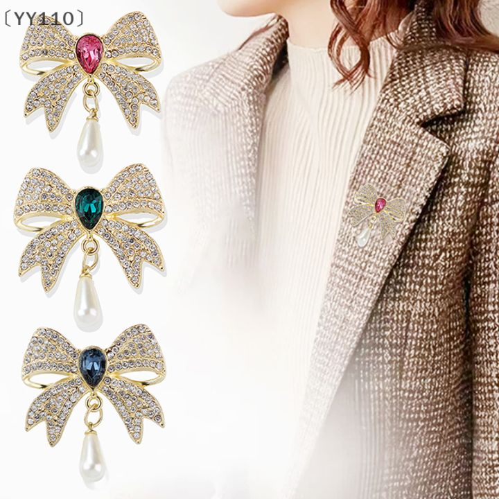 〔YY110〕Vintage Light Luxury Rhinestone Bow Brooches Women Clothing Coat Jewelry Accessries Gifts